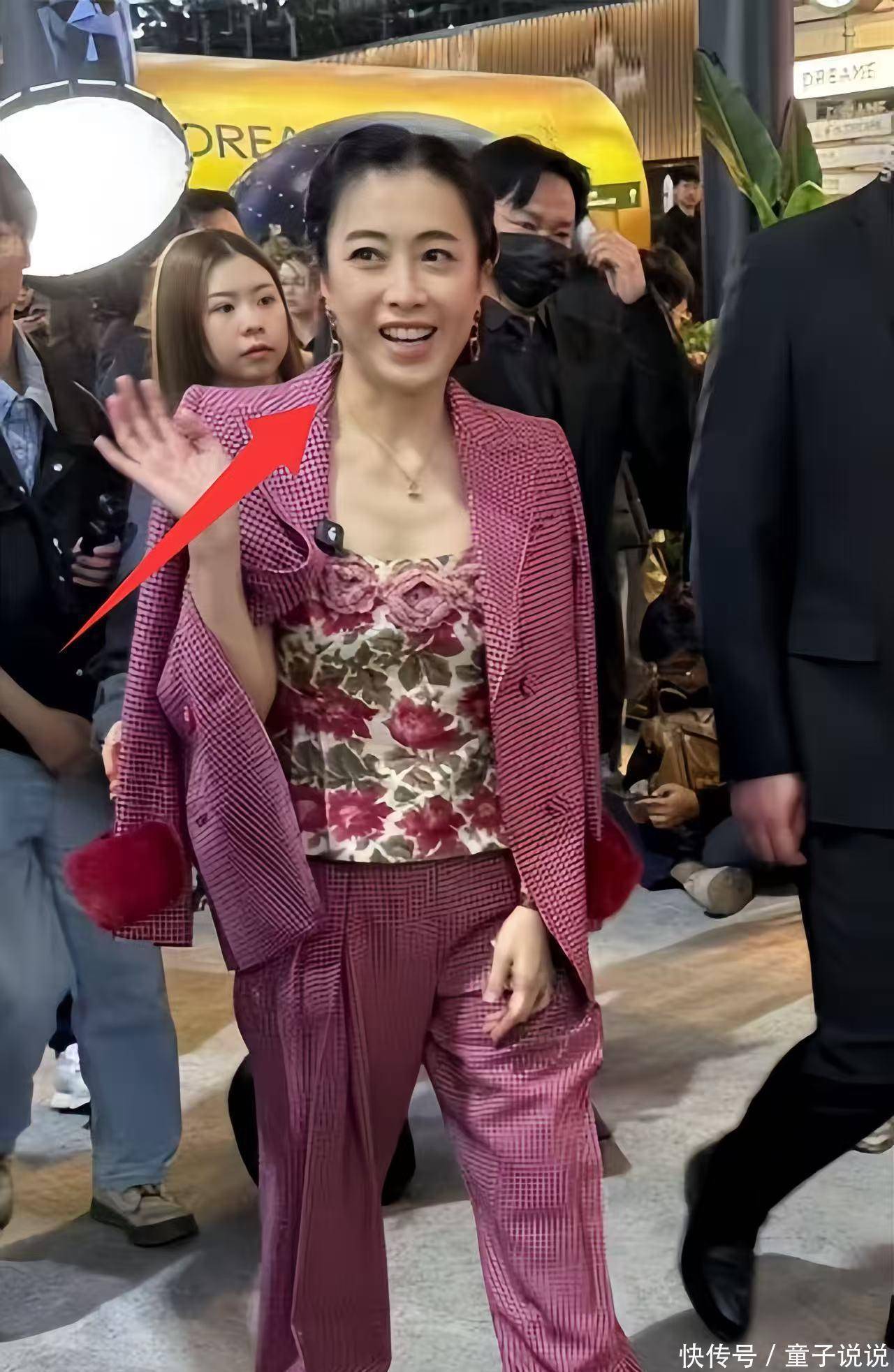你看她那身粉色西装,剪裁利落又显瘦,内搭低胸裹胸衬出精致锁骨,整个人精神得不得了。最绝的是,懂行的一眼就认出这是十多年前芬迪的老款,料子挺括得像新的一样,显然被呵护得极好。要知道,以甘比现在的身家,别说新款,就是独家定制也能随便挑,干嘛特意穿件旧衣服?其实啊,这根本不是低调,而是刻在骨子里的底气。